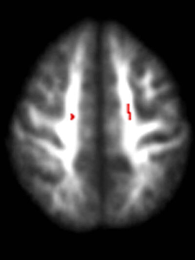 Damage to the brain of a teenage drinker, top view